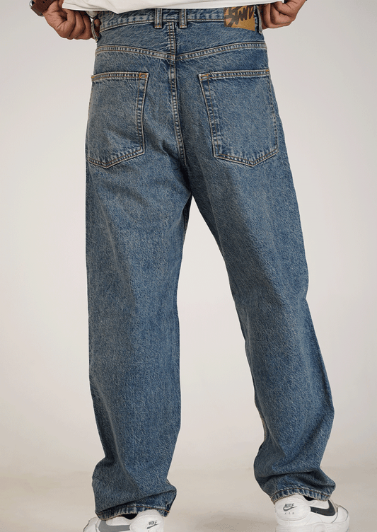 PullNBear Branded Men’s Baggy Fit Denim Jeans – Classic Blue MJ-21