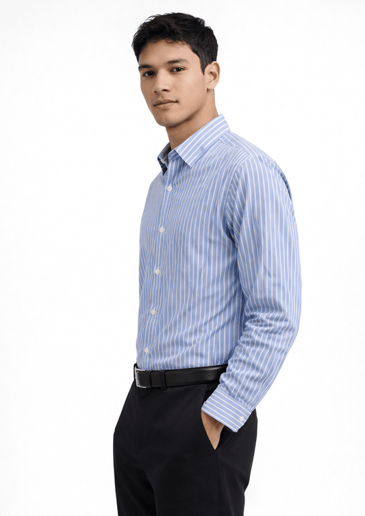 Zelig Branded Men's Modern Fit Vertical Stripe Formal Shirt - Sky Blue MFS-26