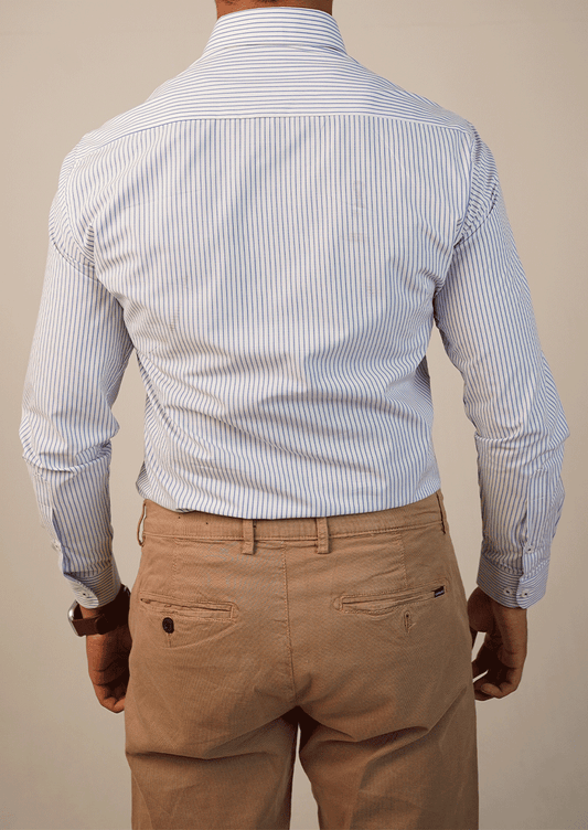 Calvy Klien Branded Mens Formal Shirt-Sky Blue and White Stripes MFS-63