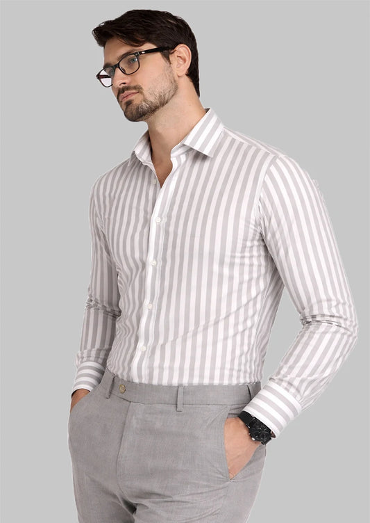 Zelig Branded Mens Formal Shirt-White With Grey Vertical Stripes MFS-64