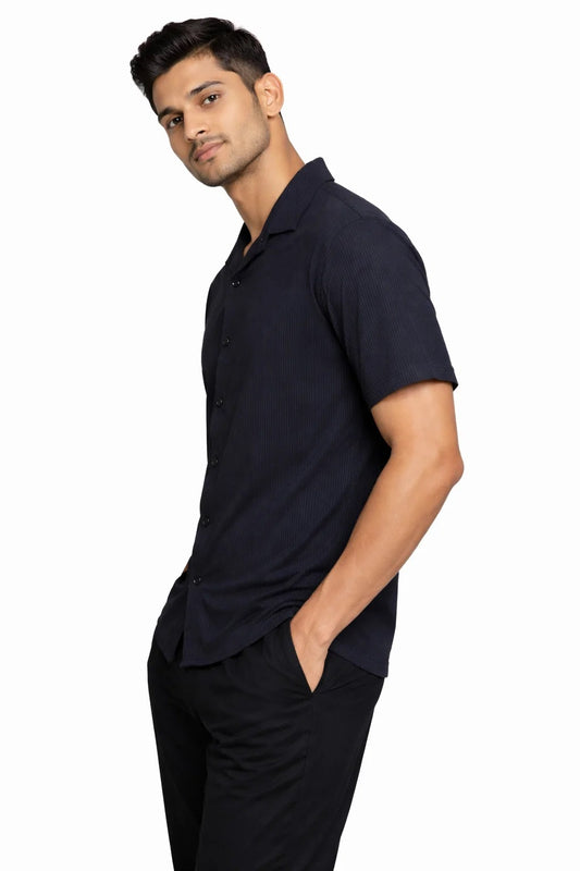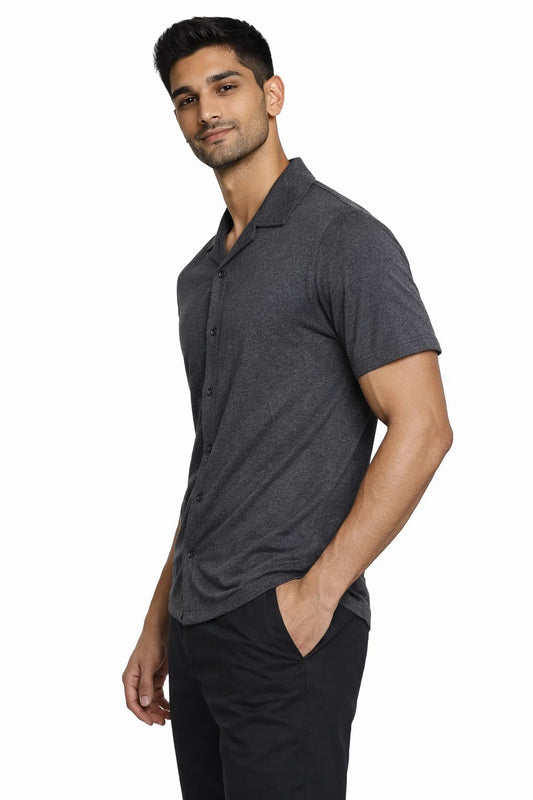 Spark Branded Men’s Ribbed Button Down Relax fit Cuban Collar Shirt – Charcoal MCS-34
