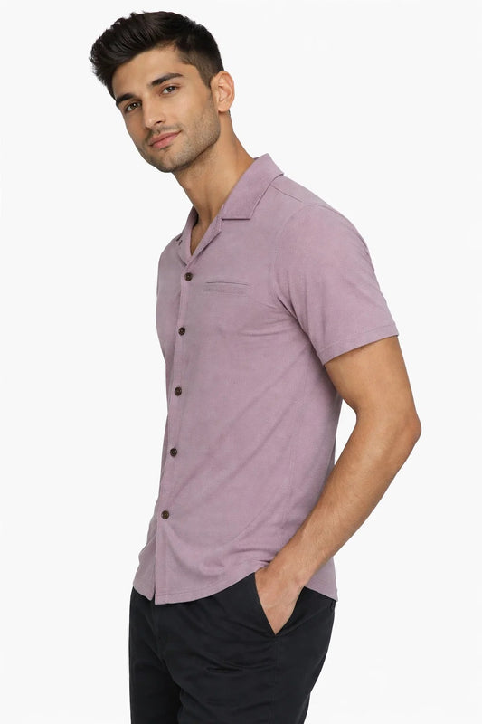 Spark Men’s Ribbed Button Down Shirt (Cuban Collar) – Mauve MCS-32