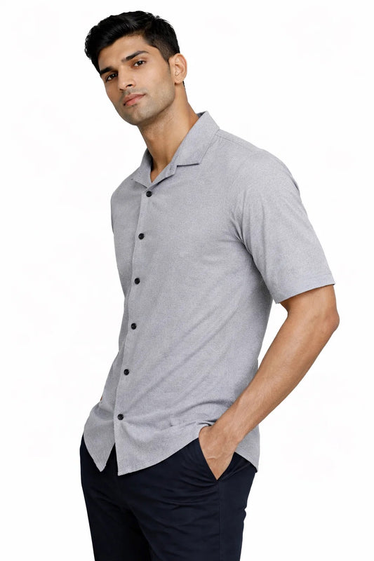 Men’s Button Down Relax fit Cuban Collar Shirt – Grey MCS-33