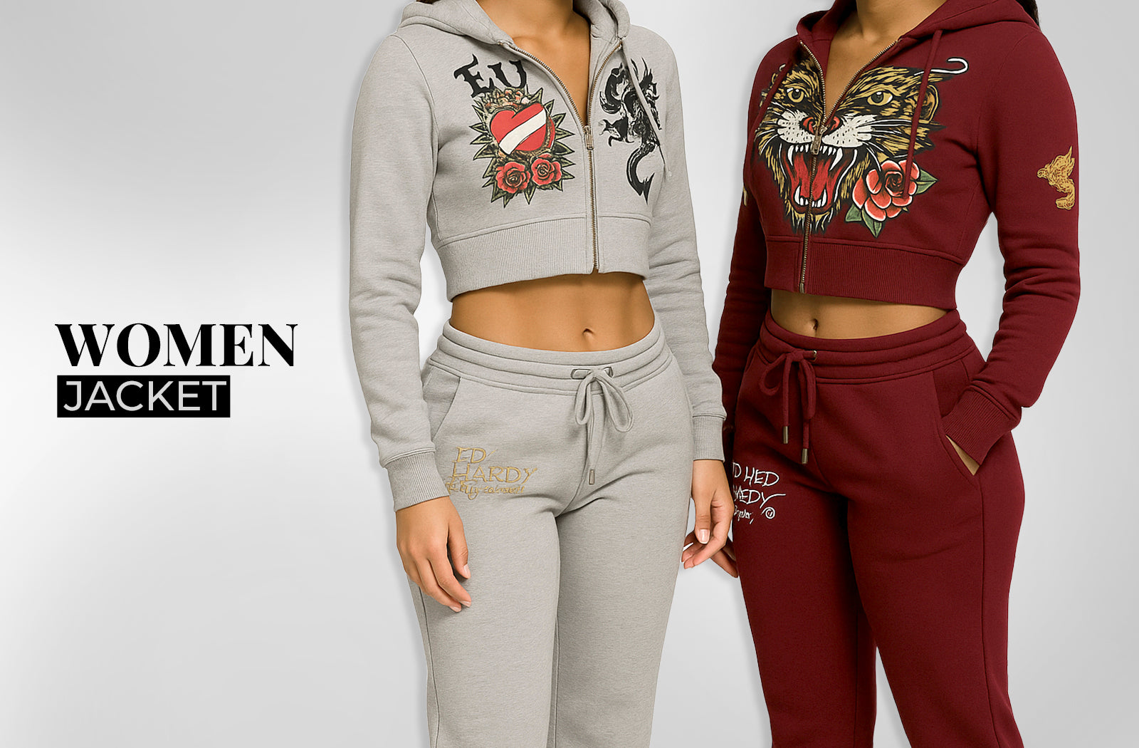 ED HRDY Branded Women's Crop Zipper Hoodie Mehroon Color Color HRDH-08