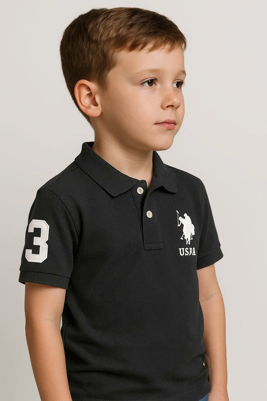 US Pollo Branded Boy's Polo T-shirt Black Color BPT-03