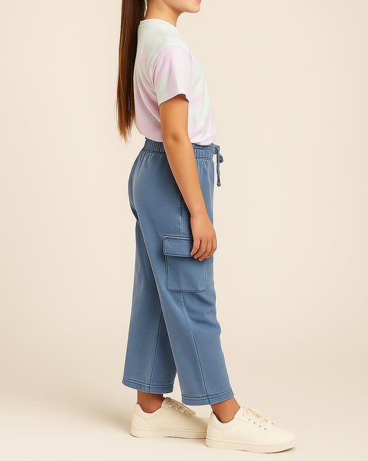 Zarraa Branded Girls Sky Blue Wide-Leg Cargo Trouser GT-01