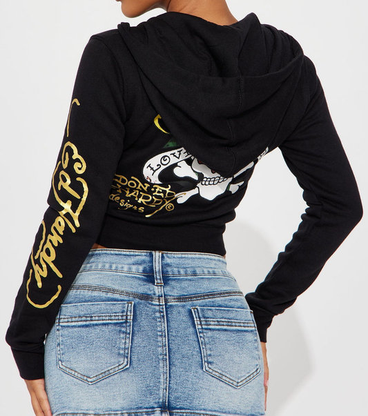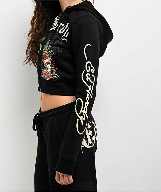 ED HRDY Branded Women's Crop Zipper Hoodie Black Color HRDH-23