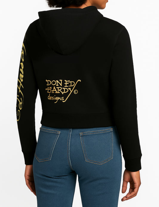 ED HRDY Branded Women's Crop Zipper Hoodie Black Color HRDH-22