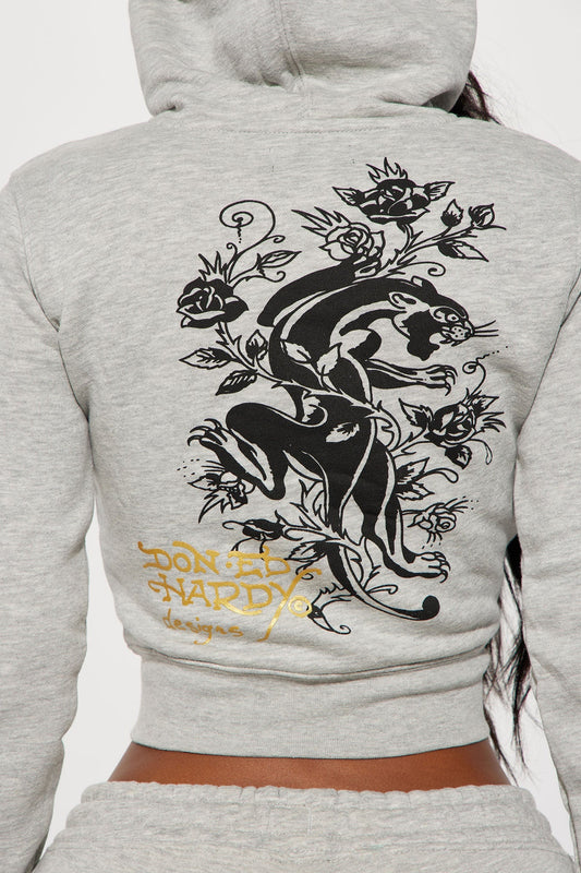 ED HRDY Branded Women's Crop Zipper Hoodie Grey Color HRDH-14