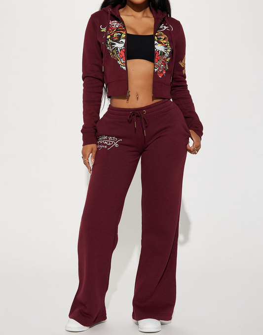 ED HRDY Branded Women's Crop Zipper Hoodie Mehroon Color Color HRDH-11