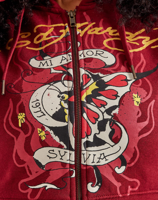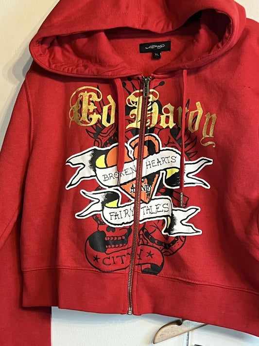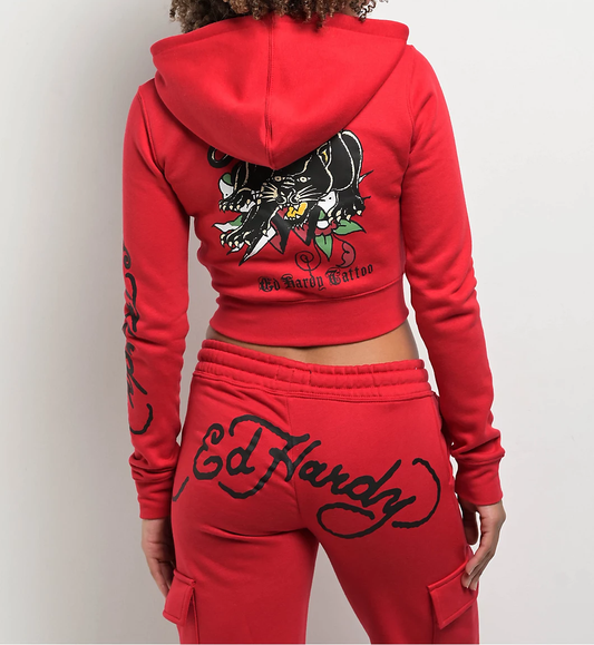 ED HRDY Branded Branded Women's Crop Zipper Hoodie Red Color HRDH-06