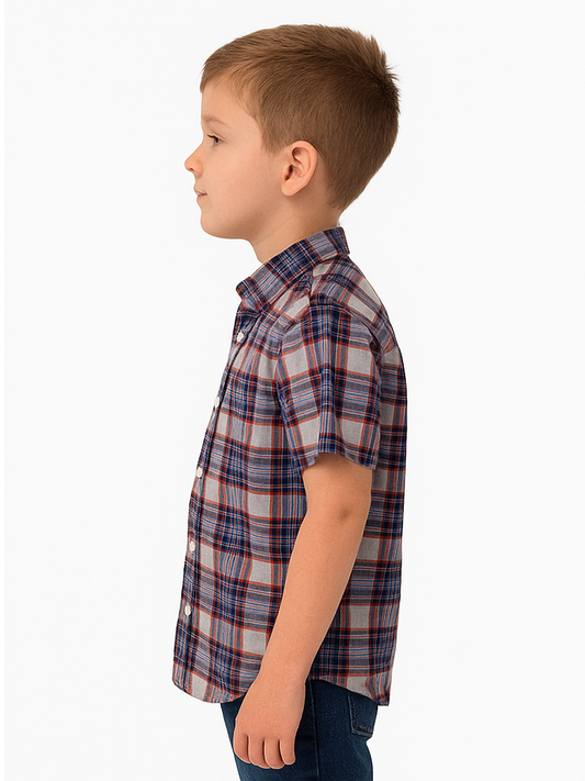 Placce Branded Boy's Red & Navy Check Shirt BS-01