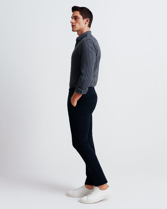 Calvy Klien Branded Men’s Classic Striped Formal Shirt – Navy & White MFS-14