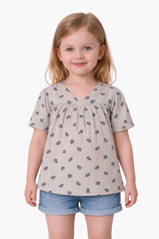 Spark Branded Girls Floral Print Cotton Shirt – Sky Blue GF-07