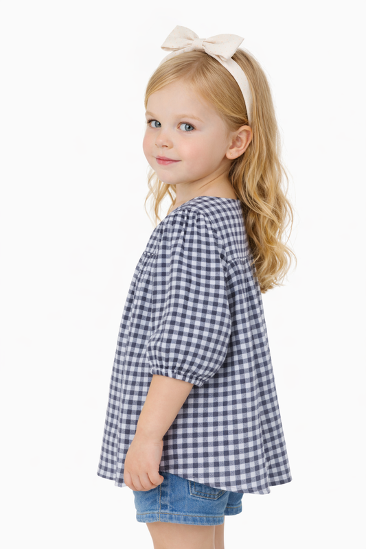 SPARK Branded Kids Gingham Puff-Sleeve Fusion Top GF-14