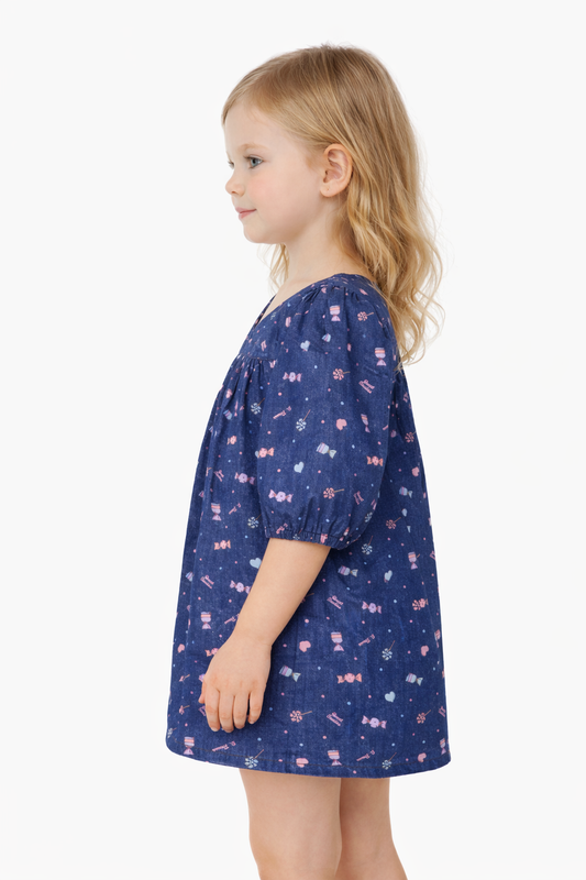 SFRA Floral Collar Denim Frock for Girls GF-01