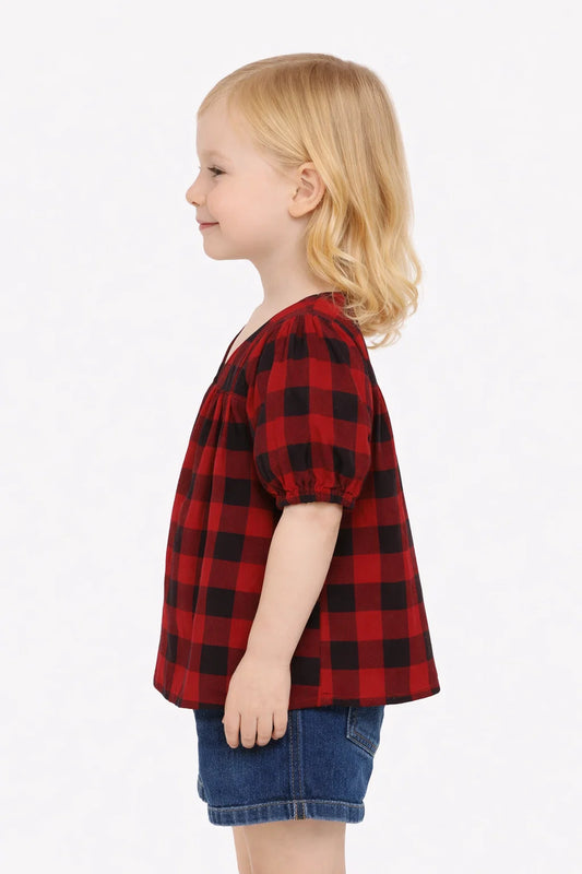 SPARK Branded Kids Buffalo Plaid Puff-Sleeve Fusion Top GF-15