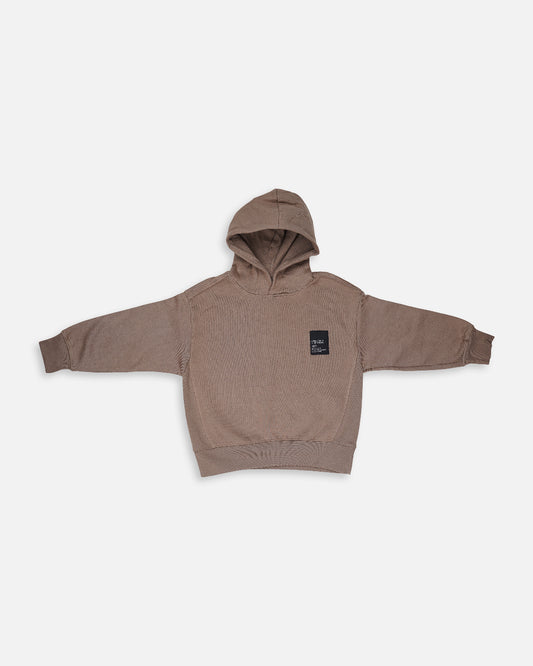 ZARRAA Branded Kids Ribbed Fleece Winter Hoodie – Mocha Brown KH-03