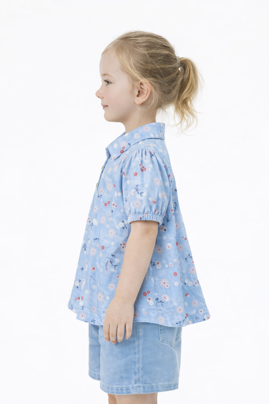 Spark Branded Girls Floral Print Cotton Shirt – Sky Blue GF-07