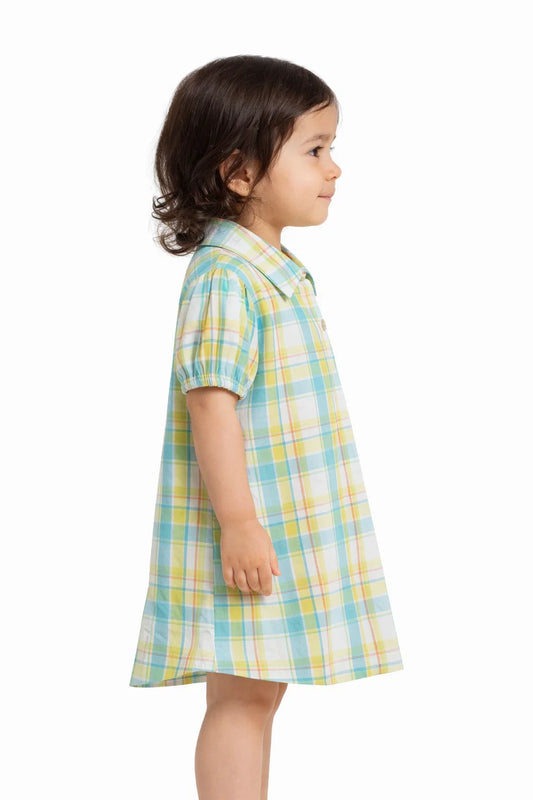 Spark Branded Girls Checkered Cotton Shirt Dress – Mint & Yellow GF-05