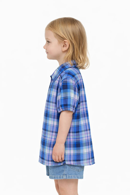 Spark Branded Girls Checkered Shirt – Blue & Lilac GF-08