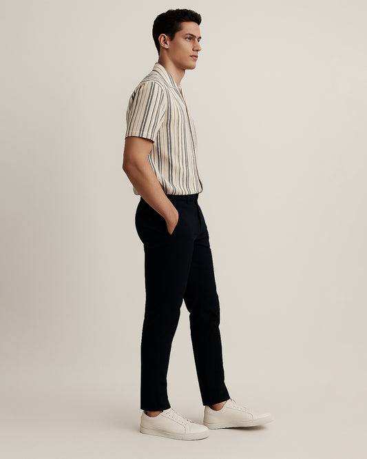 PullNBear Branded Men’s Beige Stripe Button-Down Shirt MCS-30