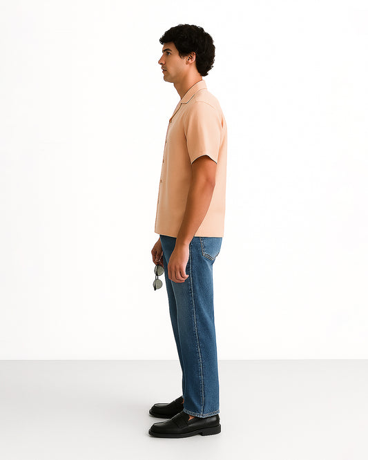 Zelig Branded Men’s Peach Cuban Collar Linen Shirt MCS-20