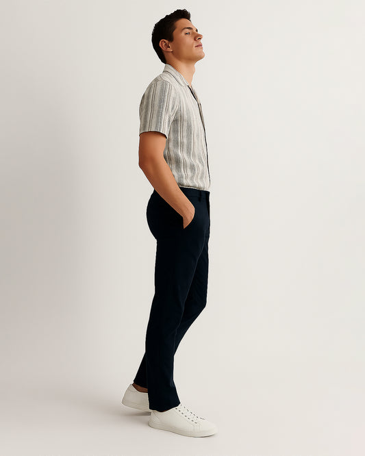 PullNBear Branded Men’s Navy Blue Textured Short Sleeve Button-Down Shirt MCS-25