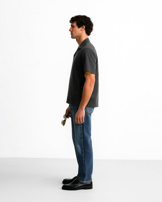 Zelig Branded Men’s Charcoal Grey Cuban Collar Linen Shirt MCS-21