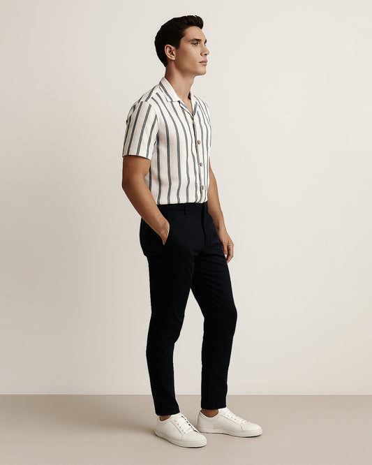 PullNBear Branded Men’s Striped Resort Collar Short-Sleeve Shirt MCS-27