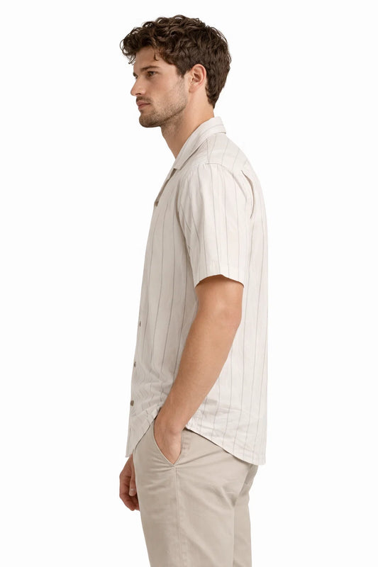 PullNBear Branded Mens Casual Shirt - Off-White / Light Grey Stripe's MCS-61