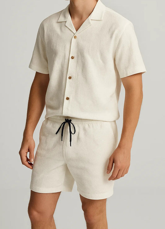ZARRAA Branded Men's Textured Co-ord Set White Color MCDS-03