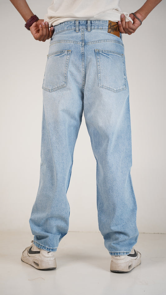 PullNBear Branded Men’s Baggy Fit Denim Jeans - Light Blue MJ-19