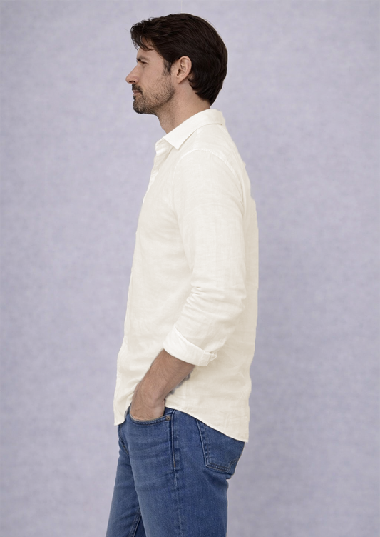 Moos Branded Mens Casual Shirt-White Linen MCS-37