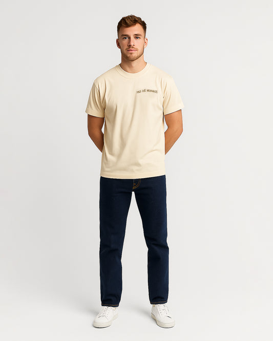 Pas Monaco Branded Men's Beige Drop Shoulder Tee MT-18