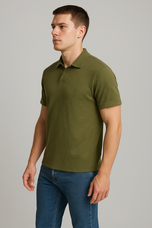 Spark Men's Olive Green Color Rib Polo T-shirt MPT-25
