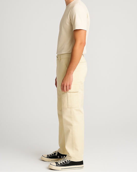 Guss Branded Wide Leg Cargo Men's Off White Color CFP-36