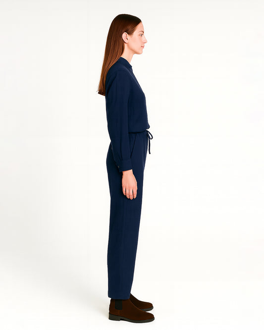 Spark Women’s Premium Linen-Blend Button Down Co-Ord Set – Navy Blue WCS-14