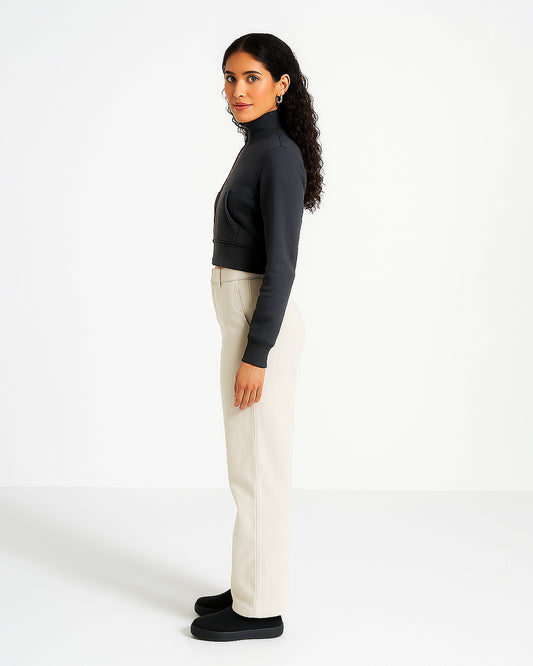 Women’s Premium Cropped High-Neck Zip-Up Jacket – Beige WJ-07