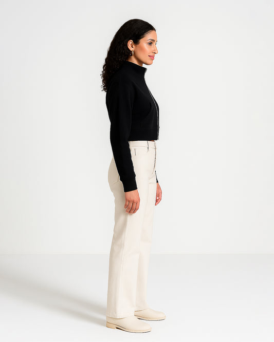 Women’s Black Cropped High-Neck Zip-Up Sweat Jacket WJ-06
