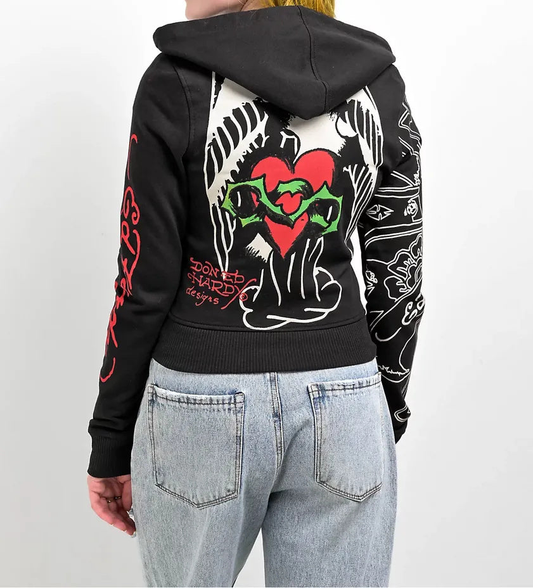 ED HRDY Branded Women's Crop Zipper Hoodie Black Color HRDH-04