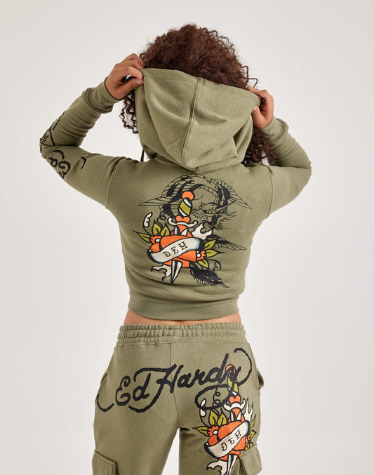 ED HRDY Branded Women's Crop Zipper Hoodie Green Color HRDH-15