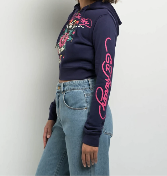 ED HRDY Branded Women's Crop Zipper Hoodie Navy Blue Color HRDH-13
