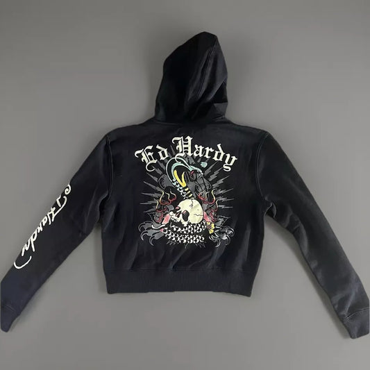 ED HRDY Branded Women's Crop Zipper Hoodie Black Color HRDH-09