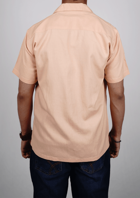 Zelig Branded Men’s Peach Cuban Collar Linen Shirt MCS-20