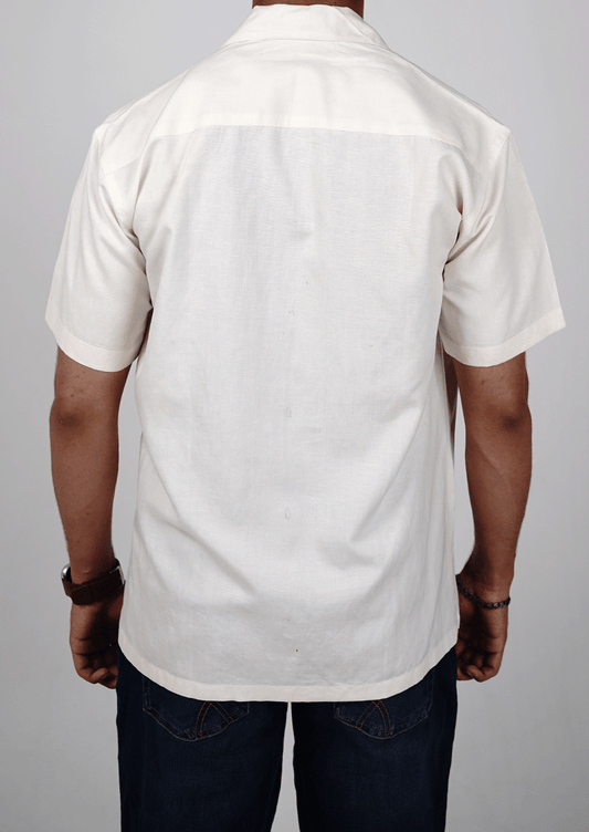 Zelig Branded Men’s Off-White Cuban Collar Linen Shirt MCS-22