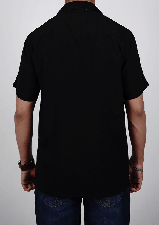 Zelig Branded Men’s Classic Black Cuban Collar Shirt MCS-19