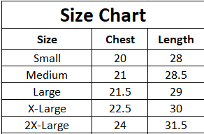 | Size | Chest | Length |