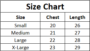 | Size | Chest | Length |
