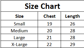 | Size | Chest | Length |